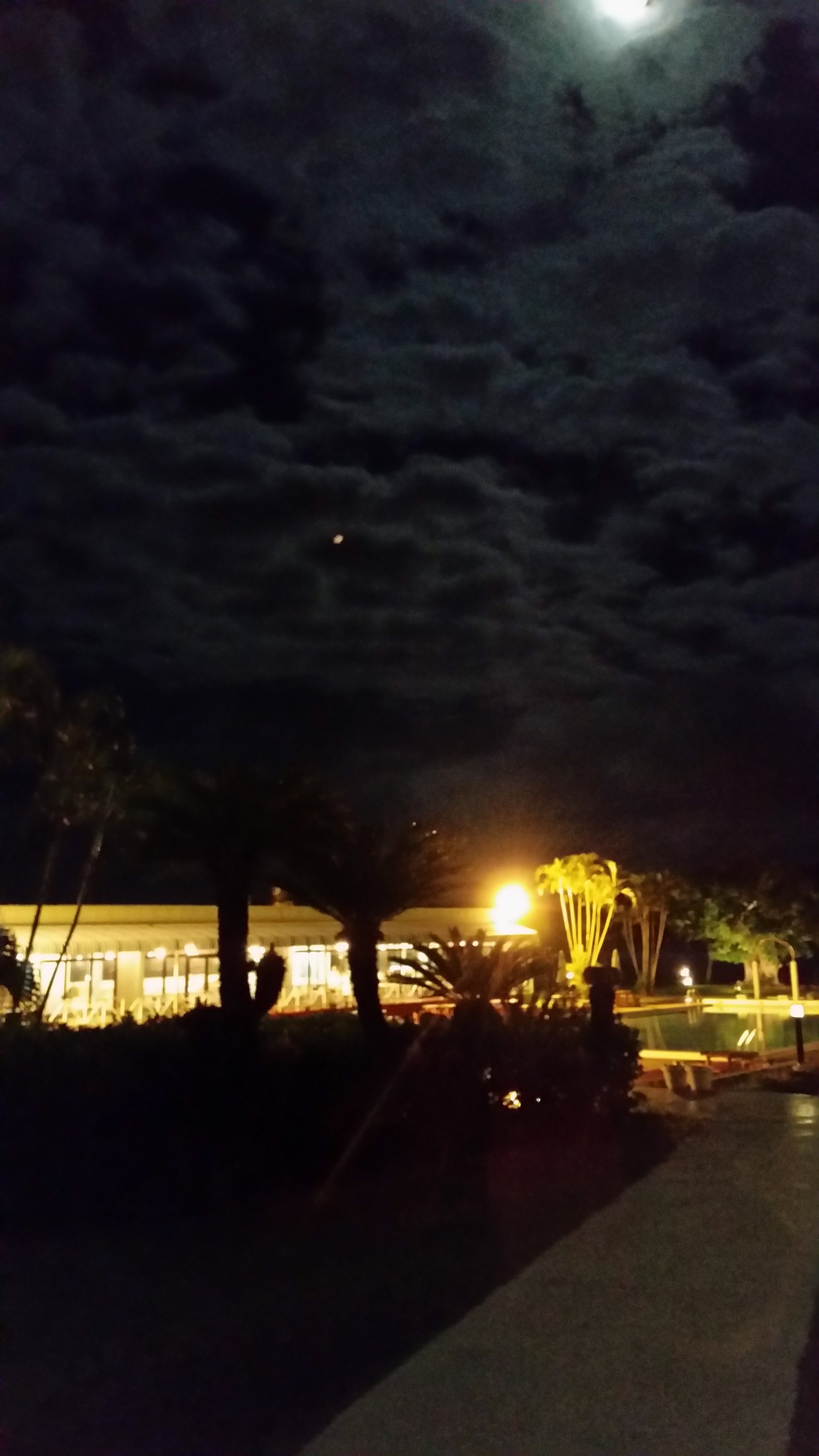 今夜は旧歴9月16日ですので、月がきれいでございます。私のスマートフォンのカメラでも、夜のプールの写真がとれました。