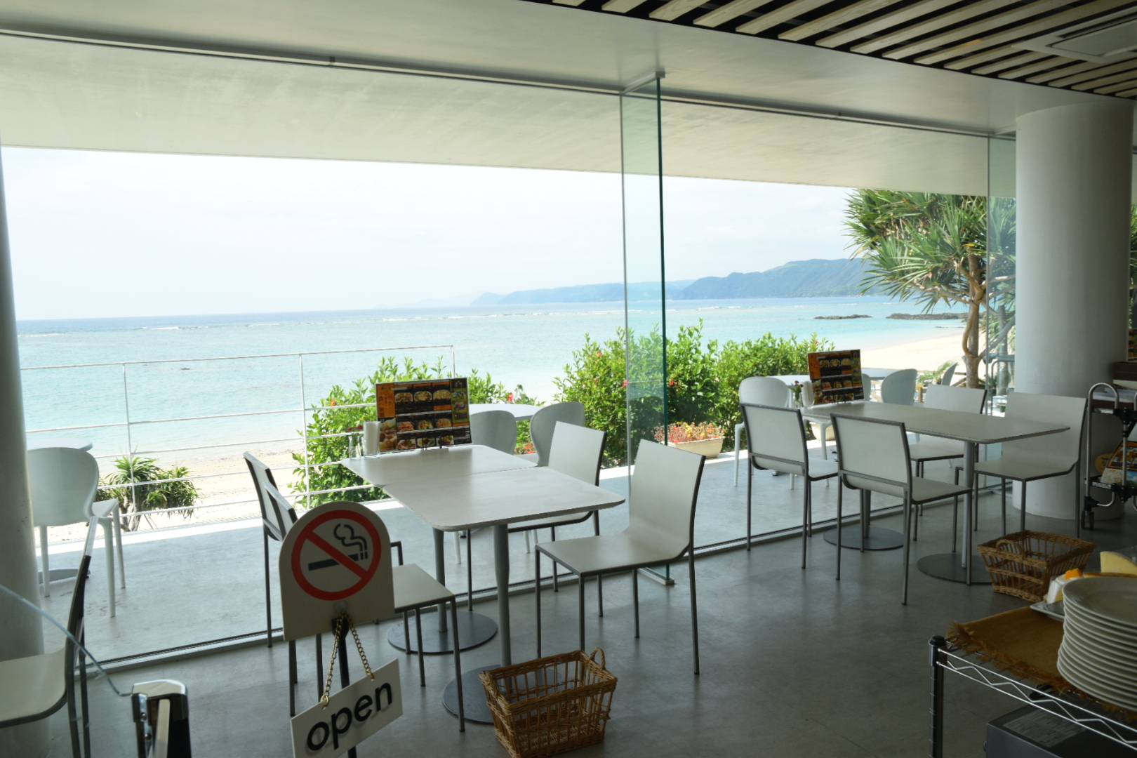空港からホテルカレッタに来る途中、ホテルばしゃ山村さんを過ぎてすぐ。きれいな用安ビーチを眺めながらおいしい食事ができる「きょら海工房」さんです。