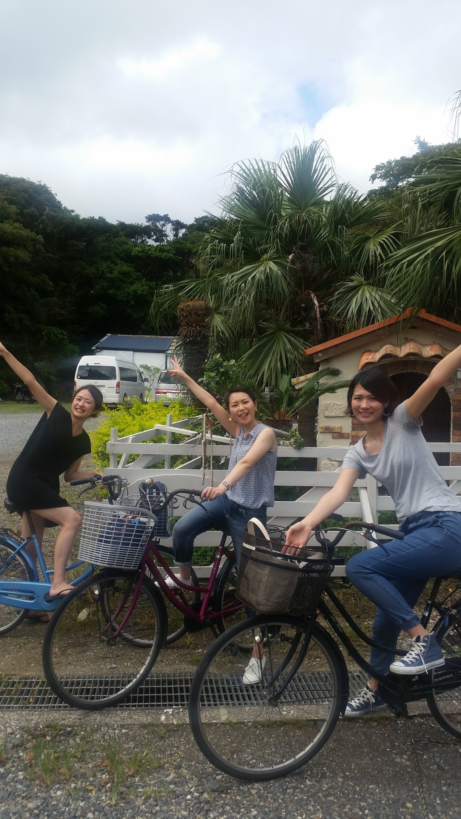 ホテルカレッタには無料レンタサイクルもありますよ。お客様、いっぱい太陽あびて楽しまれてくださいませ。いってらっしゃい。