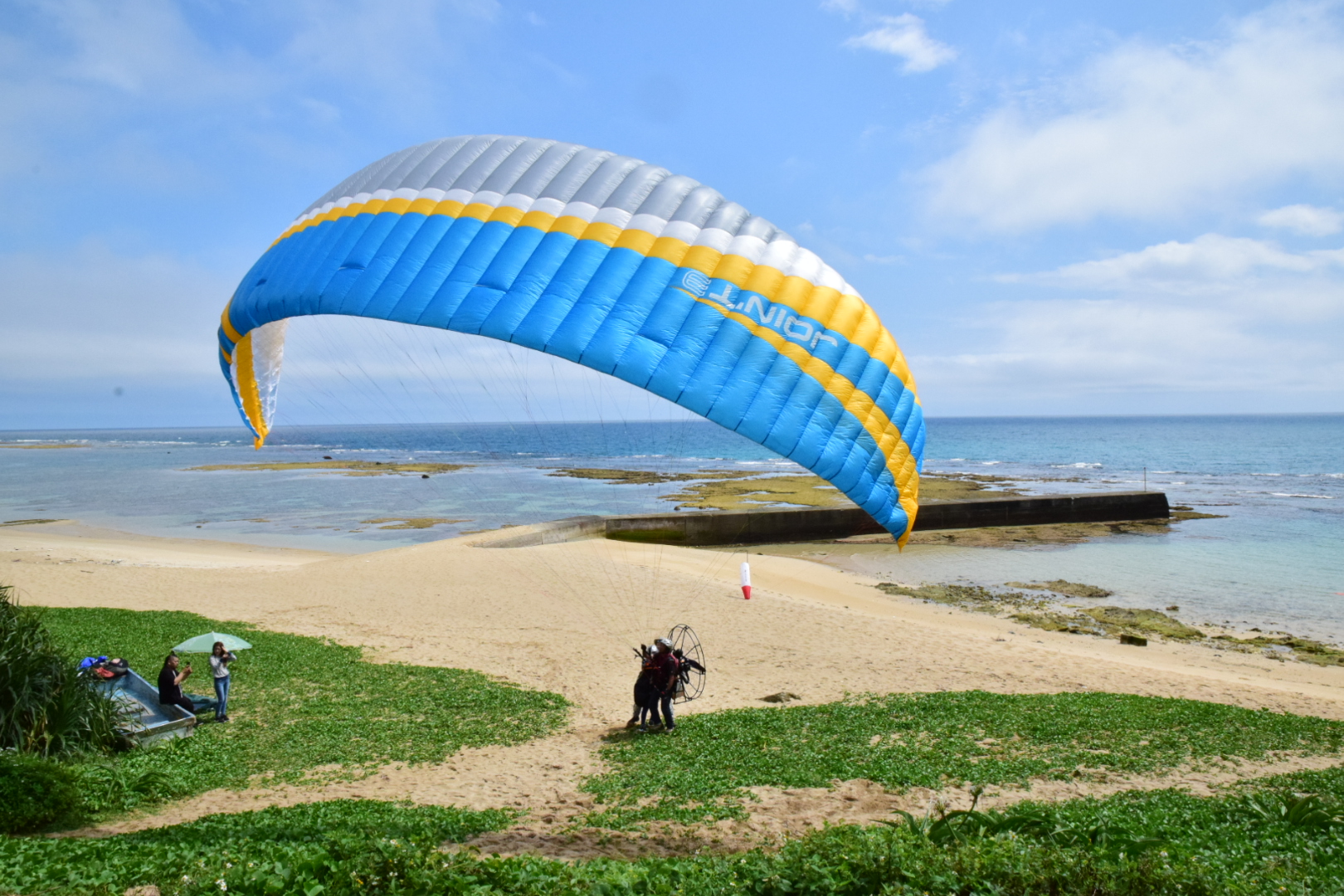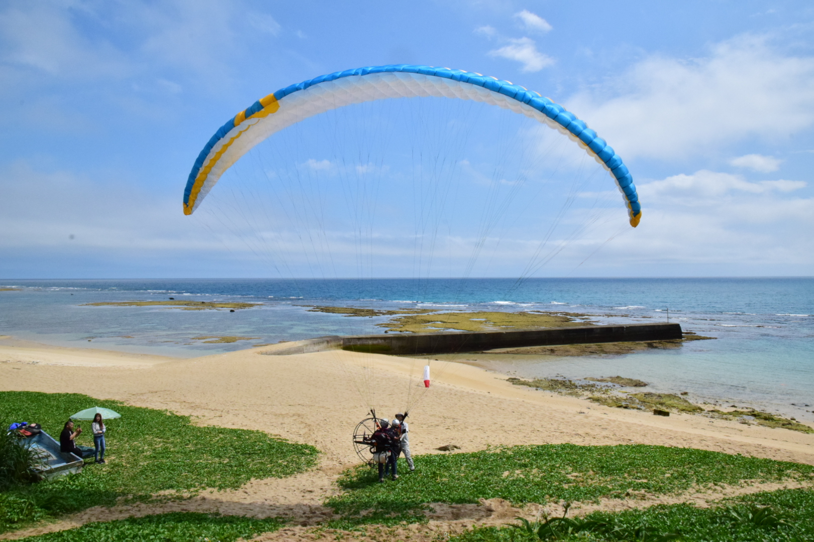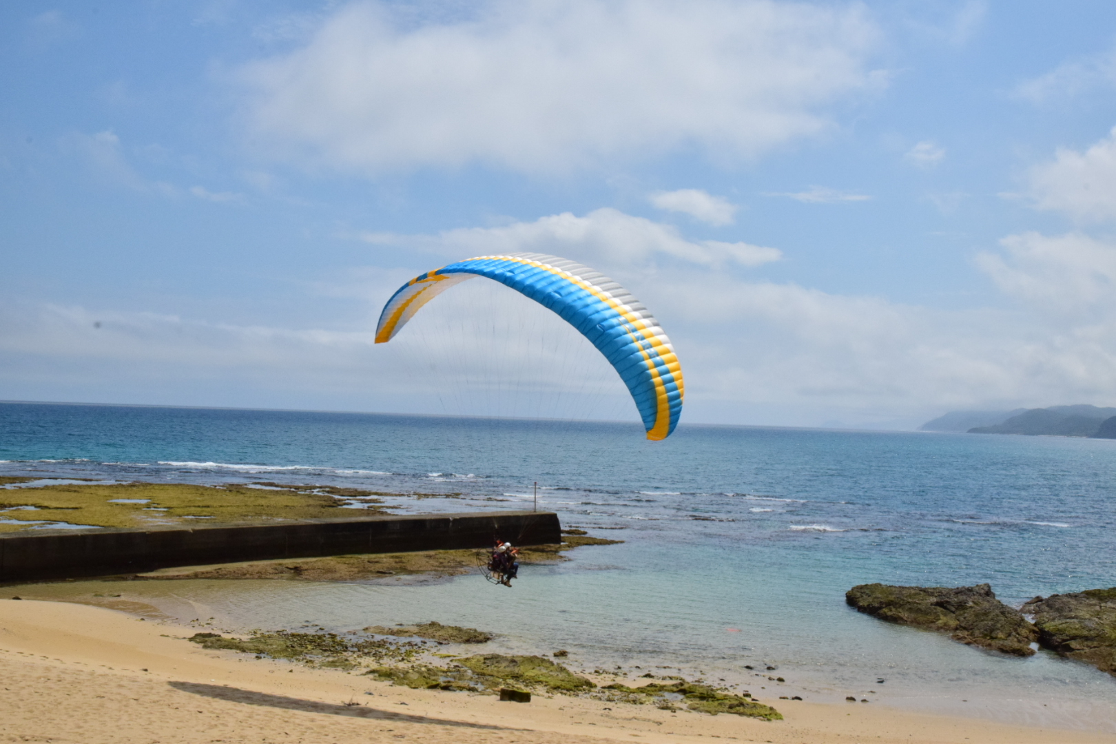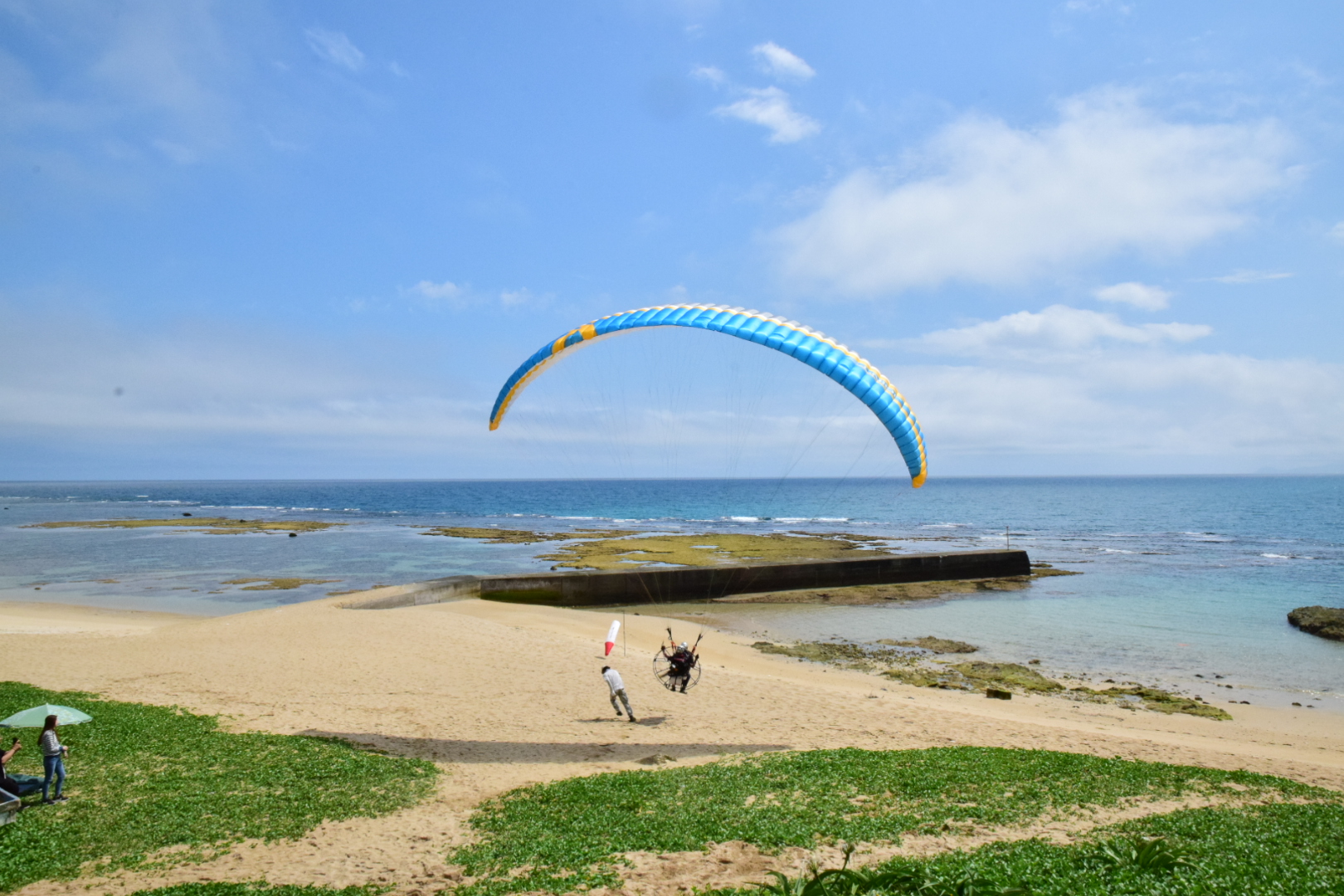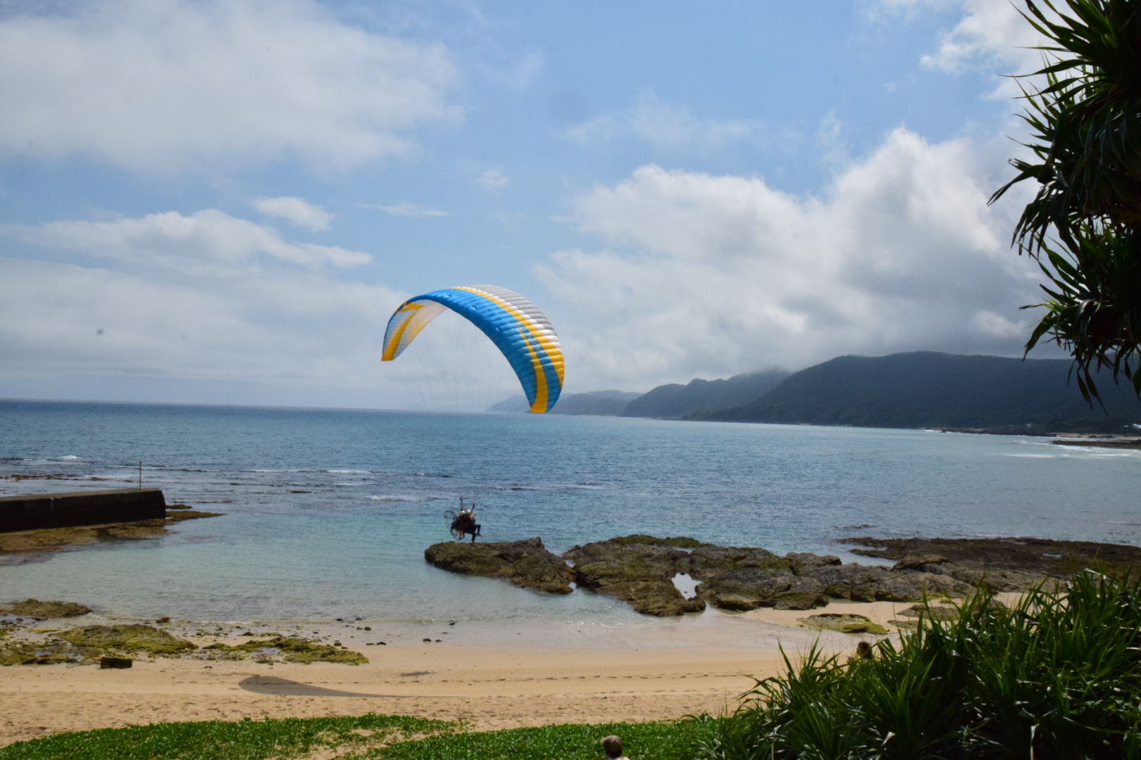 昨日の晴れ間、ホテルからも近いビラビーチでパラグライダーをやってきました。